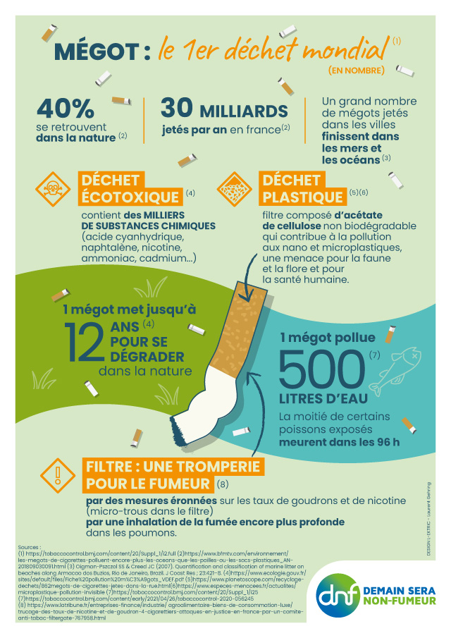 Les filtres de cigarette sont généralement faits de fibre d’acétate de cellulose, un bioplastique qui peut mettre des années, voire des décennies, à se décomposer. En plus d’être lents à se décomposer, ces microplastiques peuvent également avoir un impact négatif sur la croissance des plantes, selon des recherches scientifiques.